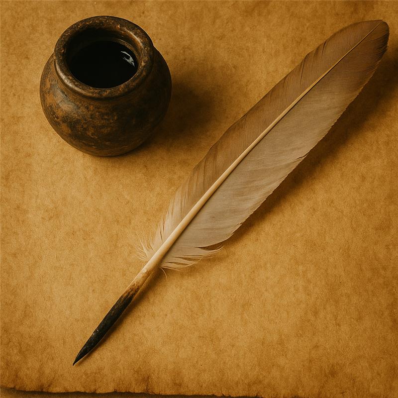 Ancient scribe’s quill, ink, and parchment representing Rabbi Meir’s editorial work